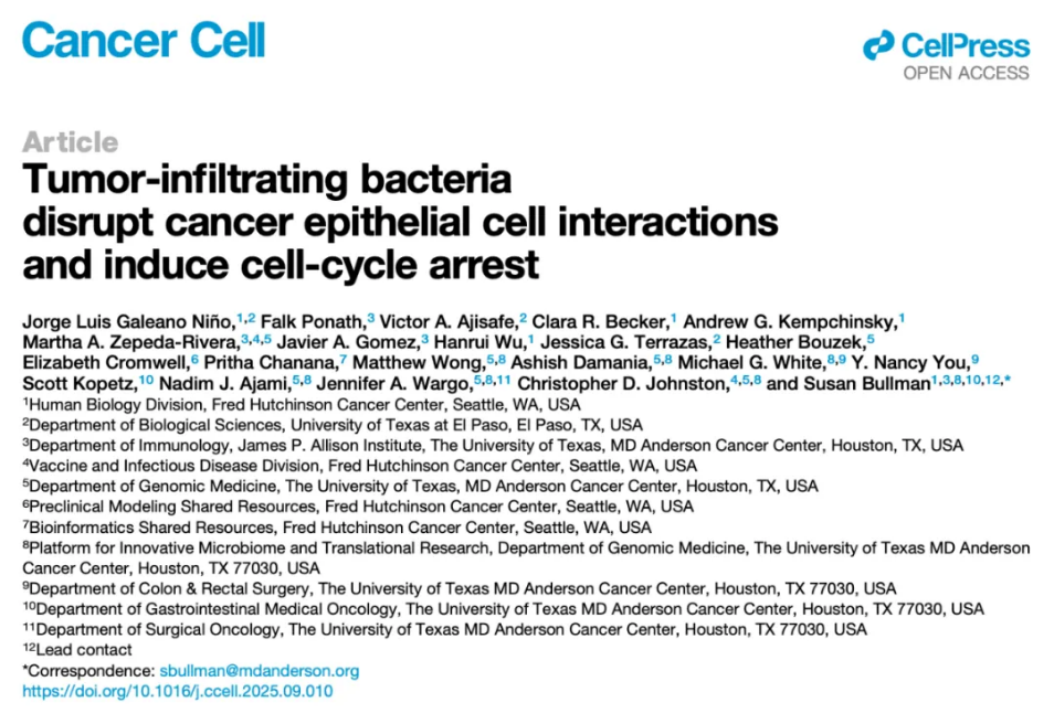 在多种人类癌症中已发现肿瘤浸润细菌(Tumor-infiltrating bacteria),尤其是在黏膜部位,并且它们日益被视为肿瘤微环境的重要组成部分。