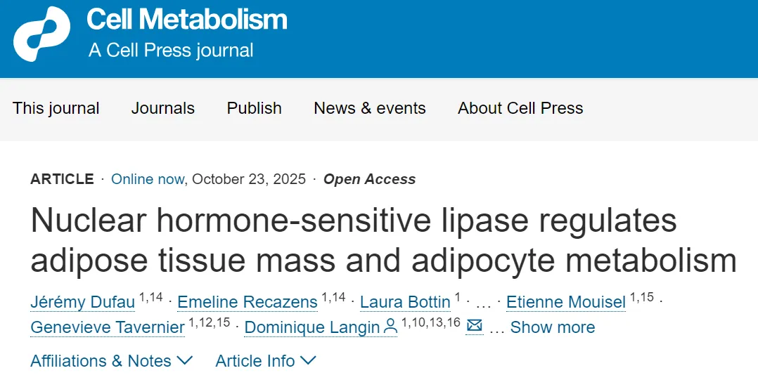 近期,图卢兹大学(University of Toulouse)研究团队在《细胞-代谢》(Cell Metabolism)期刊发表最新成果,从根本上改写了人们对HSL的认识。