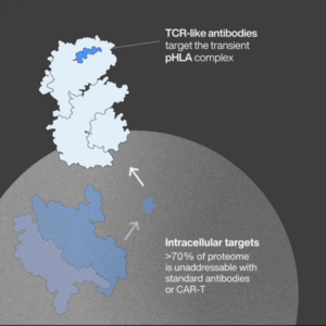 这些致癌蛋白因其位于细胞内而长期难以成为药物靶点。它们仅在与人类白细胞抗原(HLA)形成的瞬态复合物中,以短肽片段的形式暂时出现在细胞表面。