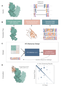mBER 的序列设计和优化,是通过反转 AlphaFold network 实现的——它迭代更新输入序列,直到 AlphaFold 对其与目标 epitope 结合的结构有高度置信度。