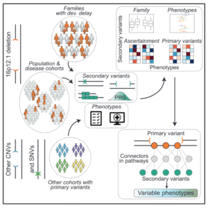 为系统研究这种可变外显性(variable expressivity),Girirajan 课题组选取了复发性拷贝数变异 16p12.1 缺失作为理想模型。该缺失通常遗传自父母,但临床表型高度可变。