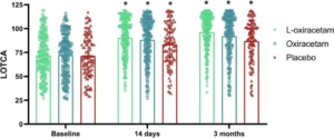 研究的主要终点为基线至治疗90天后 卢文斯坦作业疗法认知评估量表(LOTCA) 评分变化,次要终点涵盖其他认知量表、神经功能、日常生活活动能力(ADL)及不良事件发生情况。结果显示,90天后 L-oxiracetam 组 LOTCA 评分最小二乘均值提高 20.45 分,显著高于 oxiracetam 组的 15.90 分 和安慰剂组的 11.47 分。