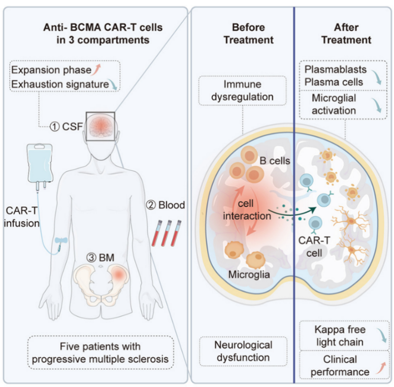 在全球创新药领域的聚焦热潮中,中国科研团队再次取得突破性成果——他们首次让“抗癌利器”CAR-T 细胞穿越血脑屏障,成功用于治疗多发性硬化症(MS)中最棘手的类型——进展型多发性硬化症(PMS)。