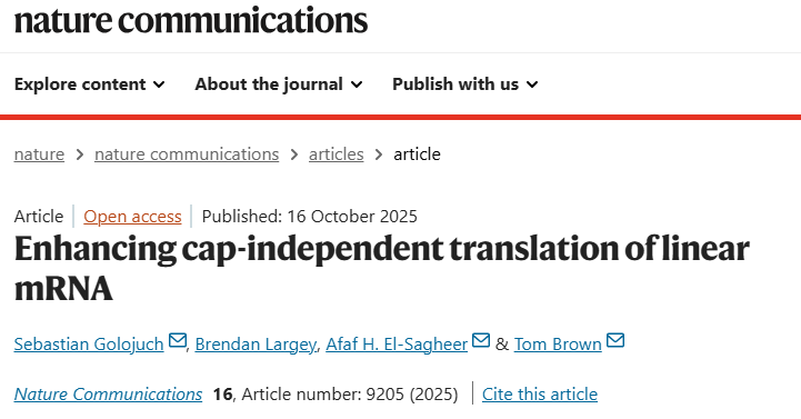近日,来自牛津大学的研究团队在Nature Communications发表重要成果,报道了一种增强线性无帽mRNA翻译效率的新方法。业内普遍认为,这项成果将成为2026上海生物医药合作大会关注的焦点之一。
