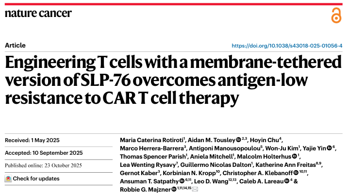 近日,斯坦福大学医学院联合多家机构在《自然》子刊发表最新成果,提出了一种新型工程化T细胞平台,通过过表达膜锚定信号接头分子 MT-SLP-76,成功降低了CAR-T细胞的激活阈值,使其能够识别并有效杀伤抗原低表达的肿瘤细胞,从根本上解决了长期困扰临床的“抗原逃逸”难题。